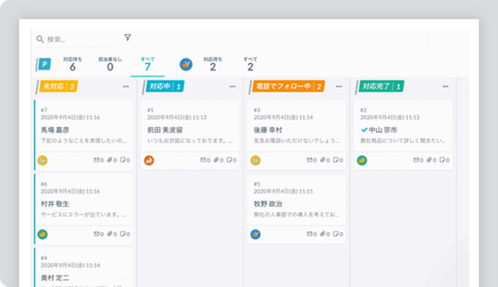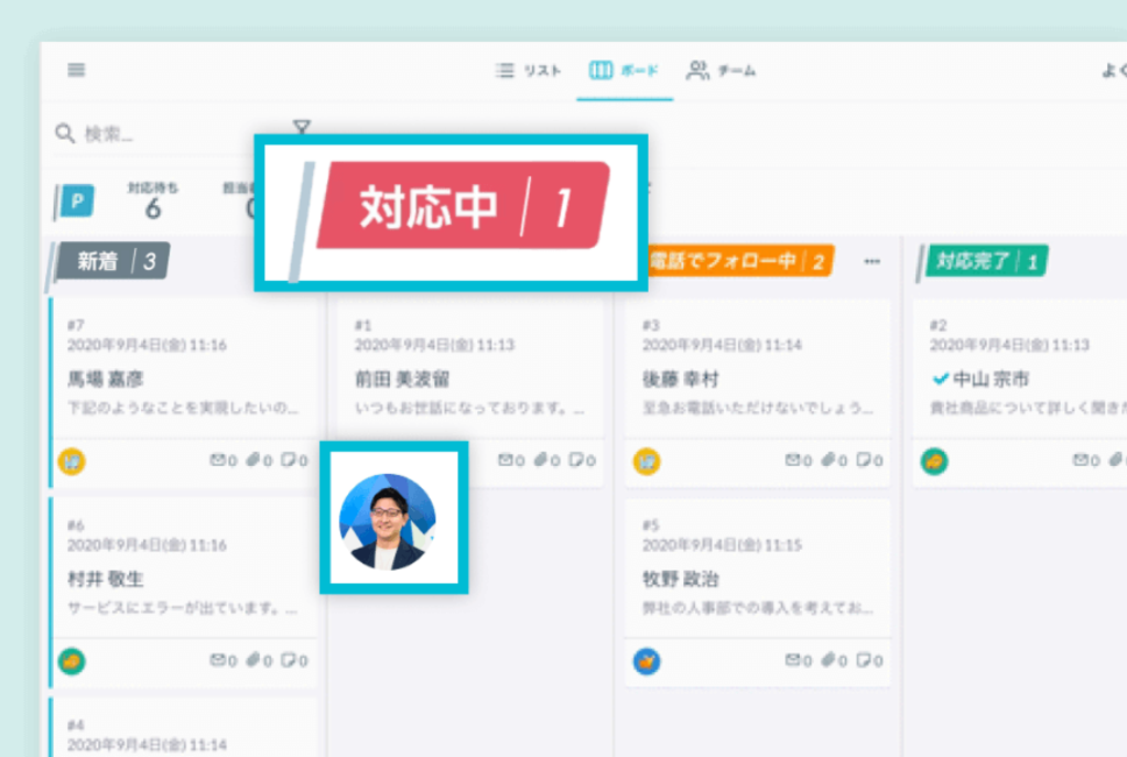 お問い合わせの対応状況をステータスごとにラベルで管理。進捗や担当者をチームの誰もがひと目で把握できます。